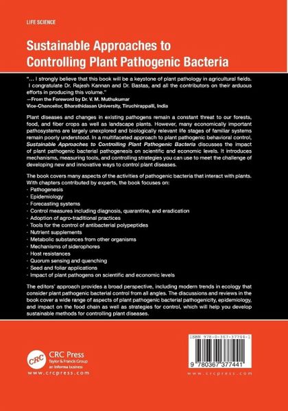 Plant diseases and changes in existing pathogens remain a constant threat to our forests, food, and fiber crops as well as landscape plants. However, many economically important pathosystems are largely unexplored and biologically relevant life stages of familiar systems remain poorly understood. In a multifaceted approach to plant pathogenic behavioral control, Sustainable Approaches to Controlling Plant Pathogenic Bacteria discusses the impact of plant pathogenic bacterial pathogenesis on scientific and economic levels. It introduces mechanisms, measuring tools, and controlling strategies you can use to meet the challenge of developing new and innovative ways to control plant diseases.