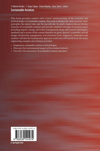 This book provides readers with a basic understanding of the concepts and methodologies of sustainable aviation.The book is divided into three sections : basic principles the airport side, and the aircraft side. In-depth chapters discuss the key elements of sustainable aviation and provide complete coverage of essential topics including airport, energy, and noise management along with novel technologies, standards and a review of the current literature on green airports, sustainable aircraft design, biodiversity management, and alternative fuels. Engineers, researchers and students will find the fundamental approach useful and will benefit from the many engineering examples and solutions provided.