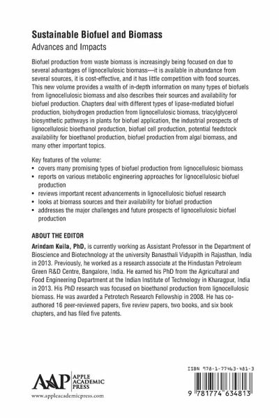 Biofuel production from waste biomass is increasingly being focused on due to due to several advantages of lignocellulosic biomass, such as availability in abundance from several sources, cost-effectiveness, little competition with food sources, etc. This new volume, Sustainable Biofuel and Biomass: Advances and Impacts, provides an abundance of in-depth information on many types of biofuels from lignocellulosic biomass and also describes biomass sources and their availability for biofuel production. This compiled book features 17 chapters that discuss the different aspects of biofuel production from lignocellulosic biomass. Chapters deal with different types lipase-mediated biofuel production, biohydrogen production from lignocellulosic biomass, triacylglycrol biosynthetic pathways in plants for biofuel applications, the industrial prospects of lignocellulosic bioethanol production, biofuel cell production, potential feedstocks availability for bioethanol production, biofuel production from algal biomass, and many other important topics.