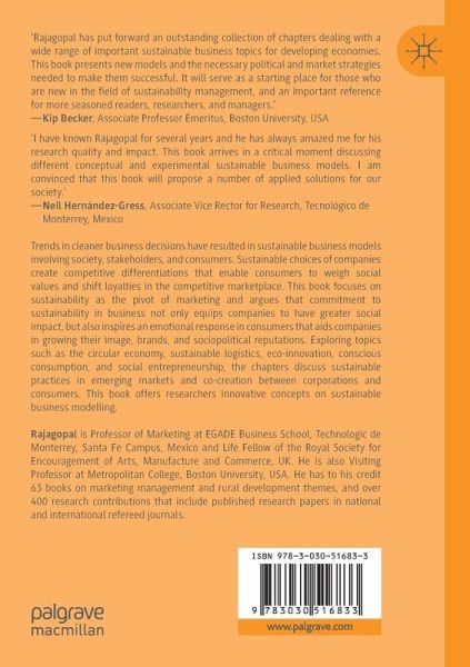 Trends in cleaner business decisions have resulted in sustainable business models involving society, stakeholders, and consumers. Sustainable choices of companies create competitive differentiations that enable consumers to weigh social values and shift loyalties in the competitive marketplace. This book focuses on sustainability as the pivot of marketing and argues that commitment to sustainability in business not only equips companies to have greater social impact but also inspires an emotional response in consumers that aids companies in growing their image, brands, and socio-political reputations. Exploring topics such as the circular economy, sustainable logistics, eco-innovation, conscious consumption, and social entrepreneurship, the chapters discuss sustainable practices in emerging markets and co-creation between corporations and consumers. This book offers researchers innovative concepts on sustainable business modelling.