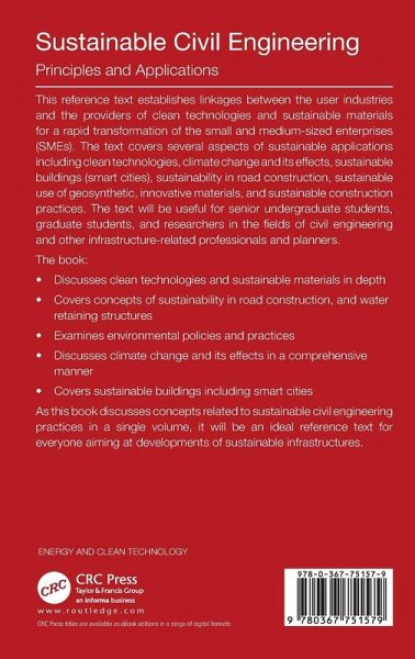 This reference text establishes linkages between the user industries and the providers of clean technologies and sustainable materials for a rapid transformation of the small and medium-sized enterprises (SMEs). The text covers several aspects of sustainable applications including clean technologies, climate change and its effects, sustainable buildings (smart cities), sustainability in road construction, sustainable use of geosynthetic, innovative materials, and sustainable construction practices. The text will be useful for senior undergraduate students, graduate students, and researchers in the fields of civil engineering and other infrastructure-related professionals and planners. The book: Discusses clean technologies and sustainable materials in depth Covers concepts of sustainability in road construction, and water retaining structures Examines environmental policies and practices Discusses climate change and its effects in a comprehensive manner Covers sustainable buildings including smart cities As this book discusses concepts related to sustainable civil engineering practices in a single volume, it will be an ideal reference text for everyone aiming at developments of sustainable infrastructures.