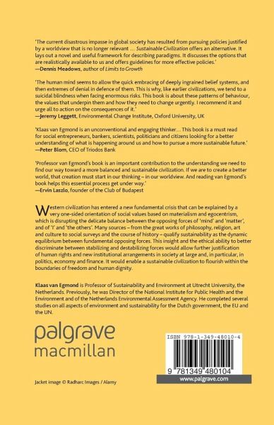 'Klaas van Egmond is an unconventional and engaging thinker In his new book, he addresses questions about how to develop a more sustainable world in new ways, reviews the values that underpin individual and organizational behaviour and redefines human dignity in the process. Sustainable Civilization explores the internal dimension of sustainability and connects it with its external developments. He shows how climate change, the social crisis and the financial crisis are interconnected. This book is a must read for social entrepreneurs, bankers, scientists, politicians and citizens looking for a better understanding of what is happening around us and how to pursue a more sustainable future.' Peter Blom, CEO Triodos Bank