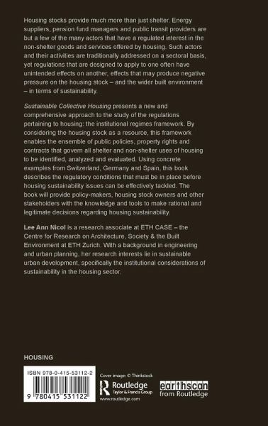 Housing stocks provide much more than just shelter. Energy suppliers, pension fund managers and public transit providers are but a few of the many stakeholders that have a regulated interest in the non-shelter goods and services offered by housing. Such stakeholders and their activities are traditionally addressed on a sectoral basis, yet regulations that are designed to apply to one often have unintended effects on another, effects that may produce negative pressure on the housing stock - and the wider built environment - in terms of sustainability. Sustainable Collective Housing presents a new and comprehensive approach to the study of the regulations pertaining to housing: the institutional regimes framework. By considering the housing stock as a resource, this framework enables the ensemble of public policies, property rights and contracts that govern all shelter and non-shelter uses of housing to be identified, analyzed and evaluated. Using examples from Switzerland, Germany and Spain, this book describes the regulatory conditions that must be in place before housing sustainability issues can be effectively tackled. The book will provide policy-makers, housing stock owners and other stakeholders with the knowledge and tools to make rational and legitimate decisions regarding housing sustainability.