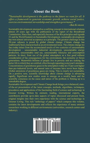 Sustainable Development and Climate Change book brings you a balanced, state-of-the-art presentation of the latest concepts, methods, algorithms, techniques, procedures and applications of the fascinating field of science and technology in Greener Living. Written by eminent, leading, international experts, the contributors provide up-to-date aspects of topics discussed and present fresh, original insights into their own experience with the science and technology in Greener Living. This rich "anthology of papers" which compose this volume, contains the latest developments and reflects the experience of many eminent researchers working in different environments (universities, research centers and industry).