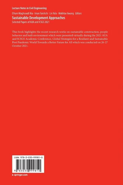 This book highlights the recent research works on sustainable construction, people behavior and built environment which were presented virtually during the 2021 AUA and ICSGS Academic Conference, Global Strategies for a Resilient and Sustainable Post Pandemic World Towards a Better Future for All which was conducted on 26-27 October 2021.