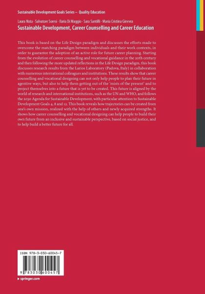 This book is based on the Life Design paradigm and discusses the efforts made to overcome the matching paradigm between individuals and their work contexts, in order to guarantee the adoption of an active role for future career planning. Starting from the evolution of career counselling and vocational guidance in the 20th century and then following the more updated reflections in the Life Design paradigm, this book discusses research results from the Larios Laboratory (Padova, Italy) in collaboration with numerous international colleagues and institutions. These results show that career counselling and vocational designing can not only help people to plan their future in agentive ways, but also to help them getting out of the 'mists of the present' and to project themselves into a future that is yet to be created. This future is aligned by the world of research and international institutions, such as the UN and WHO, and follows the 2030 Agenda for Sustainable Development, with particular attention to Sustainable Development Goals 4, 8 and 12. This book reveals how trajectories can be created from one's own mission, realized with the help of others and newly acquired strengths. It shows how career counselling and vocational designing can help people to build their own future from an inclusive and sustainable perspective, based on social justice, and to help build a better future for all.