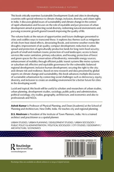 This book critically examines Sustainable Development Goals and cities in developing countries with special reference to climate change, inclusion, diversity, and citizen rights in India. It discusses global issues of sustainability and climate change in the context of rapid urbanisation and focuses on the role of equitable and just processes of urban development aimed at protecting social diversity, redeeming natural environments and, pursuing economic growth geared towards improving the quality of life. The volume looks at the nature of opportunities and future challenges presented to cities and codifies ways to transcend these. It explores key themes such as mitigation of risks from heat island effects, devastating floods, and extreme weather events like droughts; improvement of air quality; compact development; reduction in urban sprawl and protection of agriculturally productive lands for long-term food security; growth of small and medium towns; protection of rural landscapes; access to basic services like water sanitation, primary education, and housing; protection of forest and green spaces for the conservation of biodiversity; renewable energy sources; enhancement of mobility through efficient public transit systems like metro systems or suburban rail; effective and equitable governance for the vulnerable; balanced regional development; inclusive human development; securing the right to the city; and climate risk and resilience. Based on new research and data presented by global experts on climate change and sustainability, this book advances multiple discourses of sustainable urbanisation by connecting social challenges such as democracy, equity, diversity, and inclusion to create an enabling environment for a better future for cities in the developing world. Lucid and topical, this book will be useful to scholars and researchers of urban studies, urban planning, development studies, sociology, public policy and administration, political sociology, city studies, geography, architecture, and economics and also to professionals and NGOs.