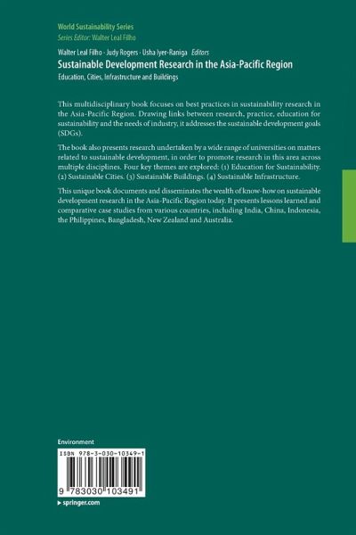 This multidisciplinary book focuses on best practices in sustainability research in the Asia-Pacific Region. Drawing links between research, practice, education for sustainability and the needs of industry, it addresses the sustainable development goals (SDGs).