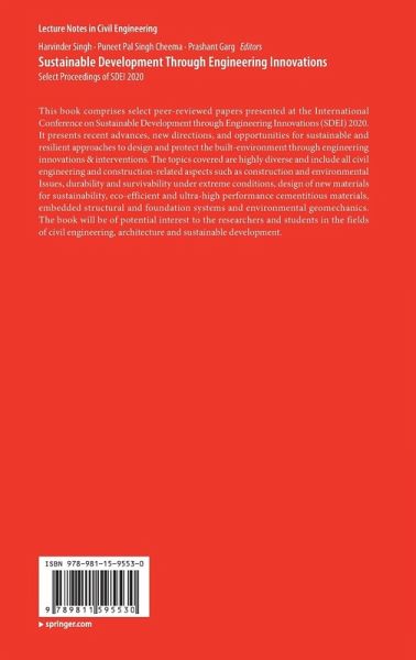 This book comprises select peer-reviewed papers presented at the International Conference on Sustainable Development through Engineering Innovations (SDEI) 2020. It presents recent advances, new directions, and opportunities for sustainable and resilient approaches to design and protect the built-environment through engineering innovations & interventions. The topics covered are highly diverse and include all civil engineering and construction-related aspects such as construction and environmental Issues, durability and survivability under extreme conditions, design of new materials for…mehr
