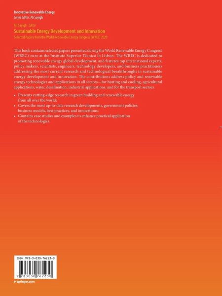 This book contains selected papers presented during the World Renewable Energy Congress (WREC) 2020 at the Instituto Superior Técnico in Lisbon. The WREC is dedicated to promoting renewable energy global development, and features top international experts, policy makers, scientists, engineers, technology developers, and business practitioners addressing the most current research and technological breakthroughs in sustainable energy development and innovation. The contributions address policy and renewable energy technologies and applications in all sectors-for heating and cooling, agricultural applications, water, desalination, industrial applications, and for the transport sectors.