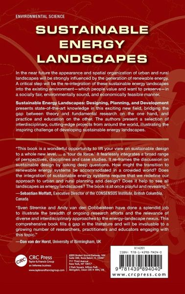 In the near future the appearance and spatial organization of urban and rural landscapes will be strongly influenced by the generation of renewable energy. One of the critical tasks will be the re-integration of these sustainable energy landscapes into the existing environment-which people value and want to preserve-in a socially fair, environmentally sound, and economically feasible manner. Accordingly, Sustainable Energy Landscapes: Designing, Planning, and Development focuses on the municipal and regional scale, where energy-conscious interventions are effective, and stakeholders can participate actively in the transition process. This book presents state-of-the-art knowledge in the exciting new field of sustainable energy landscapes. It bridges the gap between theory and fundamental research on the one hand, and practice and education on the other. The chapters-written by experts in their fields-present a selection of interdisciplinary, cutting-edge projects from across the world, illustrating the inspiring challenge of developing sustainable energy landscapes. They include unique case studies from Germany, Taiwan, the United Kingdom, Canada, Denmark, Austria, Italy, and the United States. The editors and team of contributing authors aim to inspire readers, providing a comprehensive overview of sustainable energy landscapes, including principles, concepts, theories, and examples. The book describes various methods, such as energy potential mapping and heat mapping, multicriteria decision analysis, energy landscape visualization, and employing exergy and carbon models. It addresses how to quantify the impact of energy transition both on landscape quality and energy economy, issues of growing importance. The text infuses readers with enthusiasm to promote further research and action toward the important goal of building energy landscapes for a sustainable future.