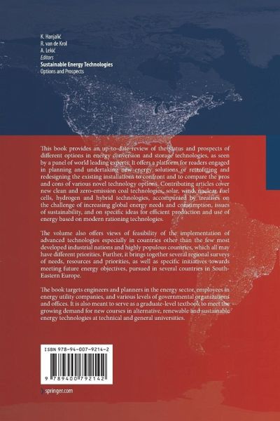 In pursuit of feasible near-future sustainable and environmentally acceptable - ergy solutions to speci?c needs and based on the available - often speci?c and l- ited - resources as pertinent to many smaller transitional countries, the Academy of Sciences and Arts of Bosnia and Herzegovina in cooperation with Dubrovnik Inter-University Centre invited a panel of experts to present and discuss the sta- of-the-art in the development of new energy technologies at a conference held in Dubrovnik,Croatia, on23-25September2006. Up-to-datereviewsof the status and prospects of different options in energy conversion and storage technologies were presented by some of the world leading authorities - members of the national and international academies of sciences, directors of institutes, directors of national and international (EU) energy programmes and academics from Belgium, France, G- many, Italy, Japan, the Netherlands, Portugal and Switzerland. The articles covered new clean and zero-emission coal technologies, solar, wind, nuclear, fuel cells, - drogen and hybrid technologies, accompanied by treatises on the challenge of - creasing global energy needs and consumption, issues of sustainability, and on - ?cient production and use of energy based on modern rationing technologies. This overview was complemented by several regional surveys of needs, resources and priorities, as well as speci?c initiatives towards meeting future energy objectives, pursued in several countries in South-Eastern Europe. This volume has grown out of (but is not con?ned to) extended and revised invited articles presented at the Dubrovnik conference under the auspices of the AcademyofSciencesandArtsofBosniaandHerzegovina.