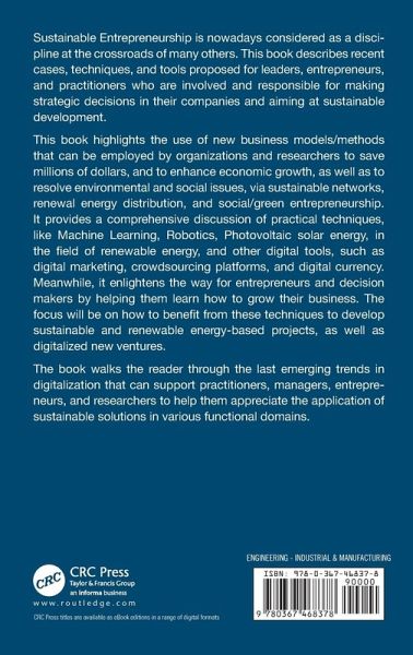 Sustainable Entrepreneurship is nowadays considered as a discipline at the cross-roads of many others. This book describes recent cases, techniques and tools proposed for leaders, entrepreneurs, and practitioners who are involved and responsible for making strategic decisions in their companies and aiming at sustainable development.