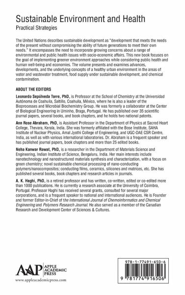 Leonardo Sepulveda Torre, PhD, is Professor at the School of Chemistry at the Universidad Autónoma de Coahuila, Saltillo, Coahuila, México, where he is also a leader of the Bioprocesses and Microbial Biochemistry Group. He was formerly a collaborator at the Center of Biological Engineering in Uminho, Braga, Portugal. He has published over 35 scientific journal papers, several books, and book chapters, and he holds two national patents. Ann Rose Abraham, PhD, is Assistant Professor in the Department of Physics at Sacred Heart College, Thevara, Kerala, India. She was formerly affiliated with the Bose Institute, SAHA Institute of Nuclear Physics, Amal Jyothi College of Engineering, and UGC-DAE CSR Centre, India, as well as with various international laboratories. Dr. Abraham is a frequent speaker and has published journal papers, book chapters and more than 25 edited books. Neha Kanwar Rawat, PhD, is a researcher in the Department of Materials Science and Engineering, Indian Institute of Science, Bengaluru, India. Her main interests include nanotechnology and nanostructured materials synthesis and characterization, with a focus on green chemistry; novel sustainable chemical processing of nano-conducting polymers/nanocomposites; conducting films, ceramics, silicones and matrices, etc. She has published several books, book chapters and research articles in journals. A. K. Haghi, PhD, is a retired professor and has written, co-written, edited or co-edited more than 1000 publications. He is currently a research associate at the University of Coimbra, Portugal. Professor Haghi has received several grants, consulted for several major corporations, and is a frequent speaker to national and international audiences. He is Founder and former Editor-in-Chief of the International Journal of Chemoinformatics and Chemical Engineering and Polymers Research Journal. He also served as a member of the Canadian Research and Development Center of Sciences & Cultures.