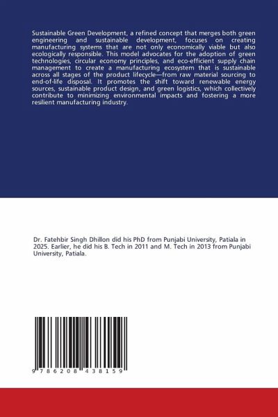 Sustainable Green Development, a refined concept that merges both green engineering and sustainable development, focuses on creating manufacturing systems that are not only economically viable but also ecologically responsible. This model advocates for the adoption of green technologies, circular economy principles, and eco-efficient supply chain management to create a manufacturing ecosystem that is sustainable across all stages of the product lifecycle-from raw material sourcing to end-of-life disposal. It promotes the shift toward renewable energy sources, sustainable product design, and green logistics, which collectively contribute to minimizing environmental impacts and fostering a more resilient manufacturing industry.