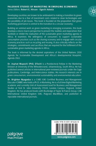 Building on seminal work on green marketing in emerging economies, this book develops a micro-macro perspective to present the realities and imperatives that facilitate or inhibit the realisation of the sustainable green marketing agenda in Africa. It examines the willingness of consumers to support sustainable consumption practices such as the sharing economy and to engage with circular economy practices such as recycling and reusing. It also critically reflects on the strategies, commitments and sacrifices that are required for the fulfilment of the sustainable green marketing agenda in Africa.