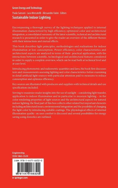 This book describes light principles, methodologies and realisations for indoor illumination at low consumption. Power efficiency, color characteristics and architectural aspects are analyzed in terms of their practical application, with the interactions between scientific, technological and architectural features considered in order to supply a complete overview, which can be read both at technical level and at user level.