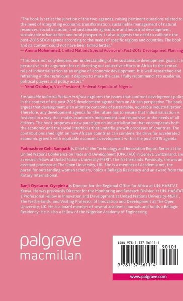 1. Sustainable Industrialization in Africa: Towards a New Development Agenda; Padmashree Gehl Sampath 2. Revisiting the MDGs in an African Perspective: Lessons for the Sustainable Development Goals; Banji Oyelaran-Oyeyinka and Olumayokun Somerukun 3. Challenges and Opportunities to Structural Transformation: Africa's Service Sector; Padmashree Gehl Sampath and Donatus Ayitey 4. Linkage dynamics and natural resources: Diversification and Catch-up; David Kaplan 5. External Opportunities, Innovation and Industrial Growth: The case of GVCs in Africa; Padmashree Gehl Sampath and Donatus Ayitey 6. Growth and Structural Change in Africa: Development Strategies for the Learning Economy; Bengt-Åke Lundvall and Rasmus Lema 7. Using Industrialization to Raise Urban Living Standards; Oyebanke Oyeyinka 8. Sustainable Development and Inequality of Opportunity in Africa; Mayokun Soremekun, Oyebanke Oyeyinka and Dominique Haughton
