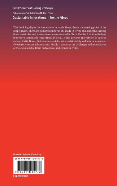 This book highlights the innovations in textile fibres, that is the starting point of the supply chain. There are numerous innovations made in terms of making the existing fibres sustainable and also to discover new sustainable fibres. This book deals with those innovative sustainable textile fibres in detail. It also presents an overview of various current textile fibres, their issues associated with sustainability and how new, sustainable fibres overcome those issues. Finally it discusses the challenges and implications of these sustainable fibres on technical and economic fronts.