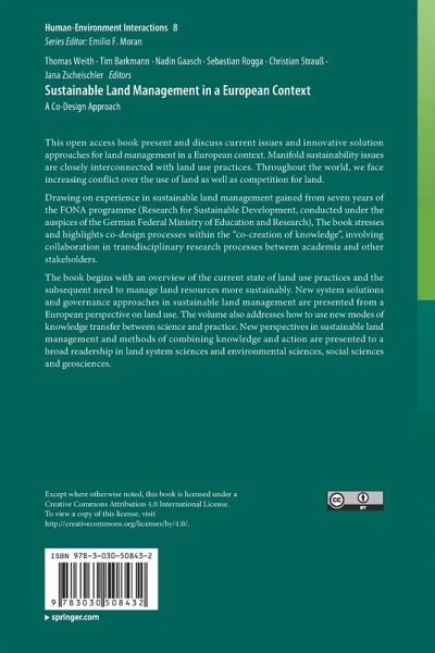 Drawing on experience in sustainable land management gained from seven years of the FONA programme (Research for Sustainable Development, conducted under the auspices of the German Federal Ministry of Education and Research), the book stresses and highlights co-design processes within the "co-creation of knowledge", involving collaboration in transdisciplinary research processes between academia and other stakeholders.