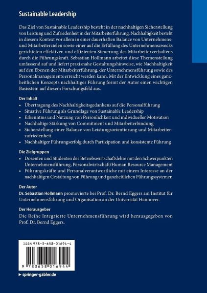 Das Ziel von Sustainable Leadership besteht in einer nachhaltigen Sicherstellung von Leistung und Zufriedenheit in der Mitarbeiterführung. Diese Nachhaltigkeit besteht vor allem in einer dauerhaften Balance von Unternehmens- und Mitarbeiterzielen sowie einer auf die Erfüllung des Unternehmenszweckes gerichteten effektiven und effizienten Steuerung des Mitarbeiterverhaltens durch die Führungskraft. Dabei sorgt Sustainable Leadership für den langfristigen Erhalt der benötigten Ressourcen: Arbeitskraft und Kapazität der Mitarbeiter sowie deren Wissen, Fähigkeiten, Kompetenzen und Motivation. Dieses Buch gibt praxisnahe Gestaltungshinweise, wie Nachhaltigkeit auf den Ebenen der Mitarbeiterführung, der Unternehmensführung sowie des Personalmanagements erreicht werden kann.