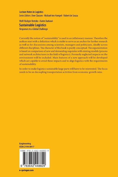 Currently the notion of "sustainability" is used in an inflationary manner. Therefore the authors start with a definition which is stable to serve as an anchor for further research as well as for discussions among scientists, managers and politicians, ideally across different disciplines. The character of this book is purely conceptual. The argumentation is based on comparison of new and demanding requisites with existing models (process and network architectures in the field of logistics). Formerly neglected impacts on the environment will be included. Main features of a new approach will be developed which are capable to avoid these impacts and to align logistics with the requirements of sustainability.