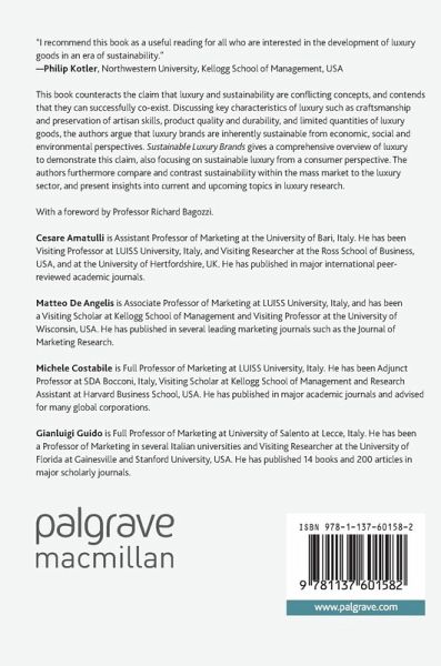 This book counteracts the claim that luxury and sustainability are conflicting concepts, and contends that they can successfully co-exist. Discussing key characteristics of luxury such as craftsmanship and preservation of artisan skills, product quality and durability, and limited quantities of luxury goods, the authors argue that luxury brands are inherently sustainable from economic, social and environmental perspectives. Sustainable Luxury Brands gives a comprehensive overview of luxury to demonstrate this claim, also focusing on sustainable luxury from a consumer perspective. The authors furthermore compare and contrast sustainability within the mass market to the luxury sector, and present insights into current and upcoming topics in luxury research.