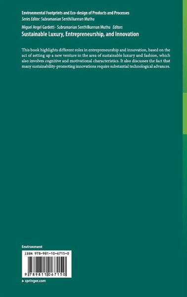This book highlights different roles in entrepreneurship and innovation, based on the act of setting up a new venture in the area of sustainable luxury and fashion, which also involves cognitive and motivational characteristics. It also discusses the fact that many sustainability-promoting innovations require substantial technological advances.