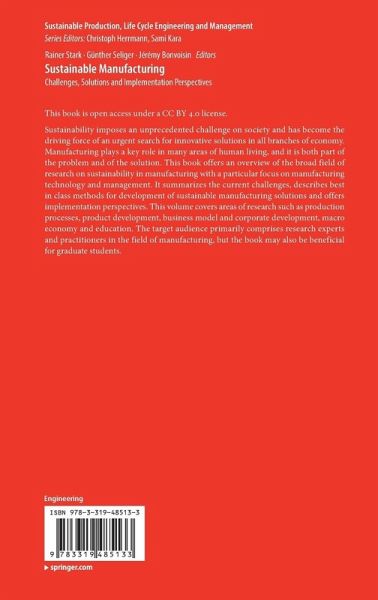 This edited volume presents the research results of the Collaborative Research Center 1026 "Sustainable manufacturing - shaping global value creation". The book aims at providing a reference guide of sustainable manufacturing for researchers, describing methodologies for development of sustainable manufacturing solutions. The volume is structured in four chapters covering the following topics: sustainable manufacturing technology, sustainable product development, sustainable value creation networks and systematic change towards sustainable manufacturing. The target audience comprises both…mehr