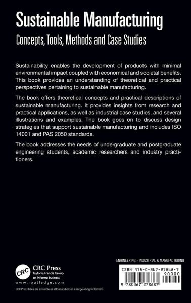 Sustainability enables the development of products with minimal environment impact coupled with economical and societal benefits. This book provides an understanding of theoretical and practical perspectives pertaining to Sustainable manufacturing. This book focuses on fundamentals, providing insights, concepts, tools, methods, case studies, and practical perspectives taken from research. The book will be of interest to students, researchers and industry practitioners.