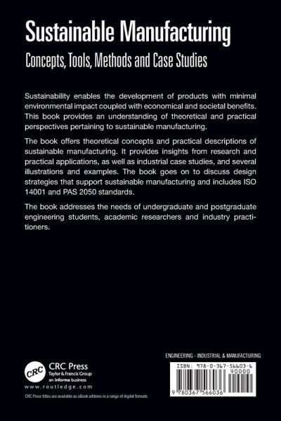 Sustainability enables the development of products with minimal environment impact coupled with economical and societal benefits. This book provides an understanding of theoretical and practical perspectives pertaining to Sustainable manufacturing.This book focuses on fundamentals, providing insights, concepts, tools, methods, case studies, and practical perspectives taken from research.The book will be of interest to students, researchers and industry practitioners.