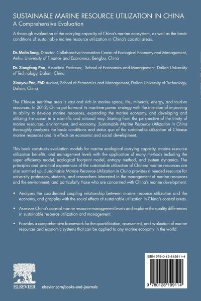 Sustainable Marine Resource Utilization in China: A Comprehensive Evaluation thoroughly analyzes the basic conditions and status quo of the sustainable utilization of Chinese marine resources and its effects on economic and social development. This book constructs evaluation models for marine ecological carrying capacity, marine resource utilization benefits, and management levels with the application of many methods, including the super efficiency model, ecological footprint model, entropy method and system dynamics. The principles and practical experiences of the sustainable utilization of Chinese marine resources are also summed up.