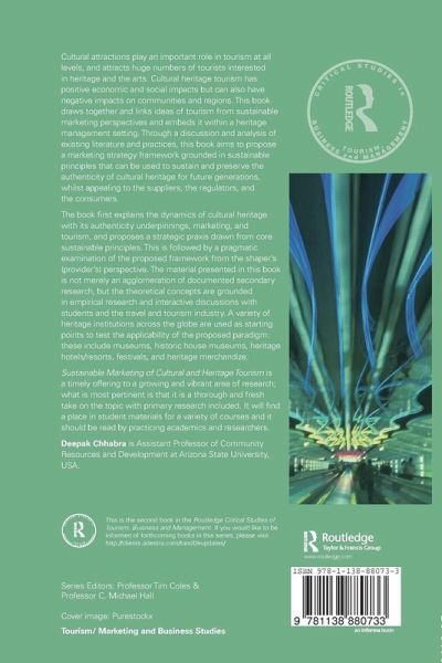 Cultural attractions play an important role in tourism at all levels, and attract huge numbers of tourists interested in heritage and the arts. Cultural Heritage Tourism has positive economic and social impacts but can also have negative impacts on communities and regions. This book draws together and links ideas of tourism from sustainable marketing perspectives and embeds it within a heritage management setting. Through a discussion and analysis of existing literature and practices this book aims to propose a marketing strategy framework grounded in sustainable principles that can be used to sustain and preserve the authenticity of cultural heritage for future generations, whilst appealing to the suppliers, the regulators, and the consumers. The book first explains the dynamics of cultural heritage with its authenticity underpinnings, marketing, and tourism, and proposes a strategic praxis drawn from core sustainable principles. This is followed by a pragmatic examination of the proposed framework from the shaper's (provider's) perspective. The material presented in this book is not merely an agglomeration of documented secondary research, but the theoretical concepts are grounded in empirical research and interactive discussions with students and the travel and tourism industry. A variety of heritage institutions across the globe are used as starting points to test the applicability of the proposed paradigm: these include museums, historic house museums, heritage hotels/resorts, festivals, and heritage merchandize. This is a timely offering to a growing and vibrant area of research; what is most pertinent is that it is a thorough and fresh take on the topic with primary research included. It will find a place in student materials for a variety of courses and it should be read by practicing academics and researchers.