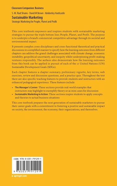 This core textbook empowers and inspires students with sustainable marketing strategies to pursue the triple bottom line; People, Planet and Profit. The purpose is to underpin a brand's commercial competitive advantage through its societal and environmental impact. It presents complex cross-disciplinary and cross-functional theoretical and practical discussions in a simplified manner to specify how the learning outcomes from different chapters can address the grand challenges associated with climate change, economic instability, geopolitical uncertainty, and inequity whilst underpinning…mehr