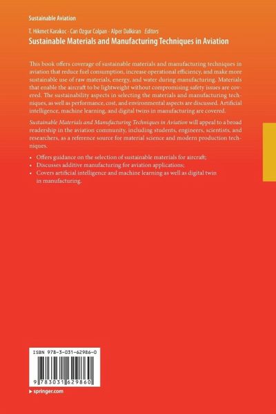 Sustainable Materials and Manufacturing Techniques in Aviation will appeal to a broad readership in the aviation community, including students, engineers, scientists, and researchers, as a reference source for material science and modern production techniques. Offers guidance on the selection of sustainable materials for aircraft;Discusses additive manufacturing for aviation applications;Covers artificial intelligence and machine learning as well as digital twin in manufacturing.