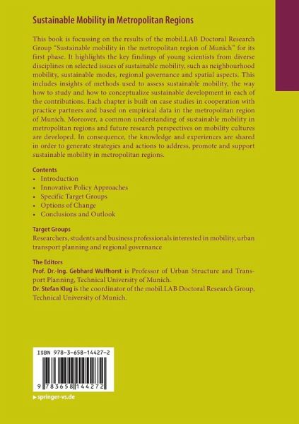 This book is focussing on the results of the mobil.LAB Doctoral Research Group "Sustainable mobility in the metropolitan region of Munich" for its first phase. It highlights the key findings of young scientists from diverse disciplines on selected issues of sustainable mobility, such as neighbourhood mobility, sustainable modes, regional governance and spatial aspects. This includes insights of methods used to assess sustainable mobility, the way how to study and how to conceptualize sustainable development in each of the contributions. Each chapter is built on case studies in cooperation with practice partners and based on empirical data in the metropolitan region of Munich. Moreover, a common understanding of sustainable mobility in metropolitan regions and future research perspectives on mobility cultures are developed. In consequence, the knowledge and experiences are shared in order to generate strategies and actions to address, promote and support sustainable mobility in metropolitan regions.