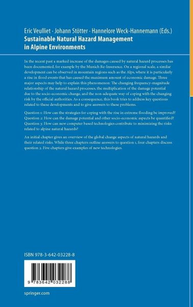 In the recent past a marked increase of the damages caused by natural hazard processes has been documented, for example by the Munich Re-Insurance. On a regional scale, a similar development can be observed in mountain regions such as the Alps, where it is particularly a rise in flood events that has caused the maximum amount of economic damage. Three major aspects may help to explain this phenomenon: The changing frequency-magnitude relationship of the natural hazard processes, the multiplication of the damage potential due to the socio-economic change, and the non-adequate way of coping with the changing risk by the official authorities. As a consequence, this book tries to address key questions related to these developments and to give answers to these problems. Question 1: How can the strategies for coping with the rise in extreme flooding be improved? Question 2: How can the damage potential and other socio-economic aspects be quantified? Question 3: How can new computerbased technologies contribute to minimizing the risks related to alpine natural hazards? An initial chapter gives an overview of the global change aspects of natural hazards and their related risks. While three chapters outline answers to question 1, four chapters discuss question 2. Five chapters give examples of new technologies.