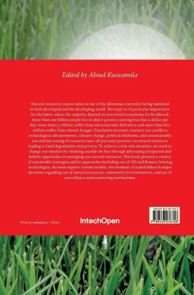 Natural resources conservation is one of the dilemmas currently facing mankind in both developed and the developing world. The topic is of particular importance for the latter, where the majority depend on terrestrial ecosystems for livelihood; more than one billion people live in abject poverty earning less than a dollar per day; more than 3.7 billion suffer from micronutrient deficiency and more than 800 million suffer from chronic hunger. Population increase, resource use conflicts, technological advancements, climate change, political doldrums, and unsustainable use and harvesting of resources have all put more pressure on natural resources leading to land degradation and poverty. To achieve a win-win situation, we need to change our mindset by thinking outside the box through advocating integrated and holistic approaches in managing our natural resources. This book presents a variety of sustainable strategies and/or approaches including use of GIS and Remote Sensing technologies, decision support system models, involvement of stakeholders in major decisions regarding use of natural resources, community level initiatives, and use of surveillance and monitoring mechanisms.
