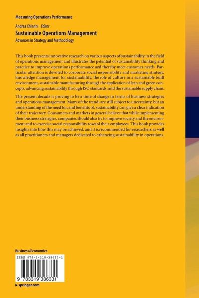 The present decade is proving to be a time of change in terms of business strategies and operations management. Many of the trends are still subject to uncertainty, but an understanding of the need for, and benefits of, sustainability can give a clear indication of their trajectory. Consumers and markets in general believe that while implementing their business strategies, companies should also try to improve society and the environment and to exercise social responsibility toward their employees. This book provides insights into how this may be achieved, and it is recommended for researchers as well as all practitioners and managers dedicated to enhancing sustainability in operations.