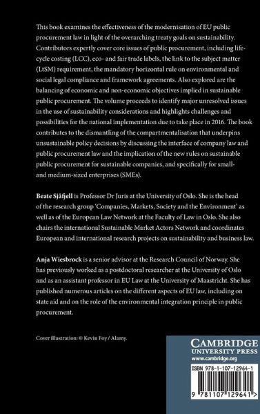 This book examines the effectiveness of the modernisation of EU public procurement law in light of the overarching treaty goals on sustainability. Contributors expertly cover core issues of public procurement, including life cycle costing (LCC), eco- and fairtrade labels, the link to the subject matter (LtSM) requirement, the mandatory horizontal rule on environmental and social legal compliance, and framework agreements. Also explored are the balancing of economic and non-economic objectives implied in sustainable public procurement. The volume moves on to identify major unresolved issues in the use of sustainability considerations, and highlights challenges and possibilities for the national implementation due to take place in 2016. The book contributes to the dismantling of the compartmentalisation that underpins unsustainable policy decisions by discussing the interface of company law and public procurement law and the implication of the new rules on sustainable public procurement for sustainable companies, and specifically for small- and medium-sized enterprises (SMEs).