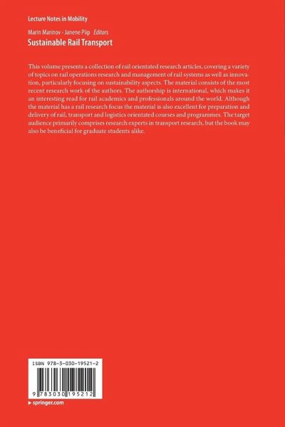 This volume presents a collection of rail orientated research articles, covering a variety of topics on rail operations research and management of rail systems as well as innovation, particularly focusing on sustainability aspects. The material consists of the most recent research work of the authors. The authorship is international, which makes it an interesting read for rail academics and professionals around the world. Although the material has a rail research focus the material is also excellent for preparation and delivery of rail, transport and logistics orientated courses and programmes. The target audience primarily comprises research experts in transport research, but the book may also be beneficial for graduate students alike.