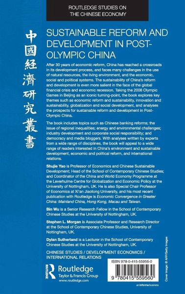 After thirty years of economic reform, China has reached a crossroads in its development process, and faces many challenges in the use of natural resources, the living environment, and the economic, social and political systems. The sustainability of China's reform and development is even more salient in the face of the global financial crisis and economic recession. Taking the 2008 Olympic Games in Beijing as an iconic turning-point, the book explores key themes such as economic reform and sustainability, innovation and sustainability, globalisation and social development, and analyses the prospects for sustainable reform and development in Post-Olympic China. The book includes topics such as Chinese banking reforms; the issue of regional inequalities; energy and environmental challenges; industry development and corporate social responsibility, and democracy and media bloggers. With analysis written by experts from a wide range of disciplines, the book will appeal to a wide range of readers interested in China's environment and sustainable development, economic and political reform, and international relations.