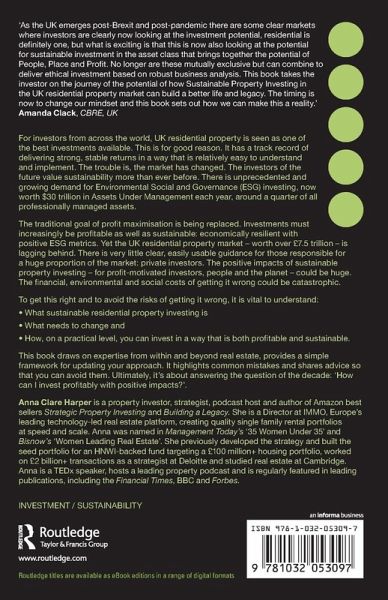 This book draws on expertise from within and beyond real estate, provides a simple framework for updating your approach. It highlights common mistakes, and shares advice so that you can avoid them. Ultimately, itâ s about answering the question of the decade: "how can I invest profitably, with positive impacts?"