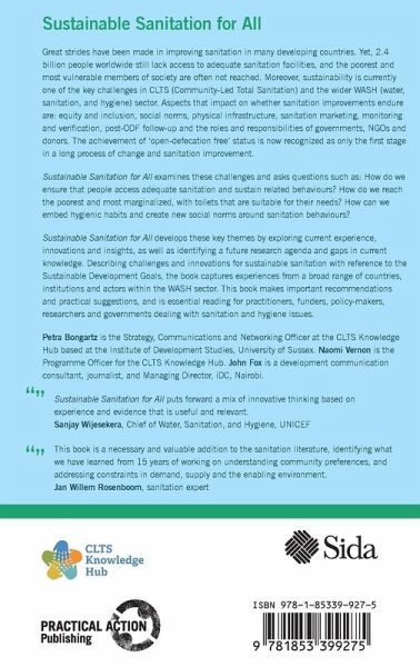 Great strides have been made in improving sanitation in many developing countries. Yet, 2.4 billion people worldwide still lack access to adequate sanitation facilities and the poorest and most vulnerable members of society are often not reached and their specific needs are not met. Moreover, sustainability is currently one of the key challenges in CLTS and wider WASH practice, subsuming issues such as behaviour change, equity and inclusion, physical sustainability and sanitation marketing, monitoring and verification, engagement of governments, NGOs and donors, particularly after open defecation free (ODF) status is reached, and more. Achievement of ODF status is now recognised as only the first stage in a long process of change and sanitation improvement, with new challenges emerging every step of the way, such as how to stimulate progress up the sanitation ladder, how to ensure the poorest and marginalised are reached, or how to maintain and embed behaviour change. There have been several useful studies on sustainability that have highlighted some of these different aspects as well as the complexities involved. This book develops these key themes by exploring current experience, practices, challenges, innovations and insights, as well as identifying a future research agenda and gaps in current knowledge. Describing the landscape of sustainability of CLTS and sanitation with reference to the Sustainable Development Goals (SDGs) and through examples from Africa and Asia, the book captures a range of experiences and innovations from a broad range of institutions and actors within the WASH sector, and attempts to make recommendations and practical suggestions for policy and practice for practitioners, funders, policy-makers and governments.