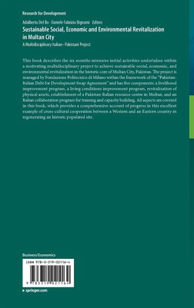 This book describes six months of initial intensive activities within a motivating multidisciplinary project to achieve sustainable social, economic, and environmental revitalization in the historic core of Multan City, Pakistan. The project is managed by Fondazione Politecnico di Milano within the framework of the "Pakistan-Italian Debt for Development Swap Agreement" and has five components: a livelihood improvement program, a living conditions improvement program, revitalization of physical assets, establishment of a Pakistan-Italian resource centre in Multan, and an Italian collaboration program for training and capacity building. All aspects are covered in this book, which provides a comprehensive account of progress in this excellent example of cross-cultural cooperation between a Western and an Eastern country in regenerating an historic populated site.