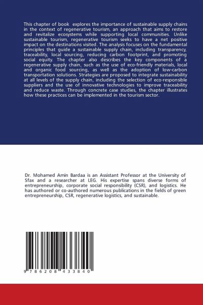 This chapter of book explores the importance of sustainable supply chains in the context of regenerative tourism, an approach that aims to restore and revitalize ecosystems while supporting local communities. Unlike sustainable tourism, regenerative tourism seeks to have a net positive impact on the destinations visited. The analysis focuses on the fundamental principles that guide a sustainable supply chain, including transparency, traceability, local sourcing, reducing carbon footprint, and promoting social equity. The chapter also describes the key components of a regenerative supply chain, such as the use of eco-friendly materials, local and organic food sourcing, as well as the adoption of low-carbon transportation solutions. Strategies are proposed to integrate sustainability at all levels of the supply chain, including the selection of eco-responsible suppliers and the use of innovative technologies to improve traceability and reduce waste. Through concrete case studies, the chapter illustrates how these practices can be implemented in the tourism sector.