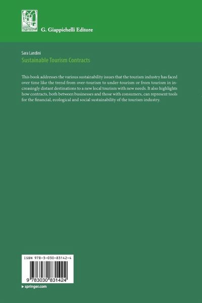 This book addresses the various sustainability issues that the tourism industry has faced over time like the trend from over-tourism to under-tourism or from tourism in increasingly distant destinations to a new local tourism with new needs. It also highlights how contracts, both between businesses and those with consumers, can represent tools for the financial, ecological and social sustainability of the tourism industry.