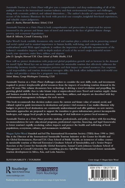 Sustainable Tourism on a Finite Planet is both comprehensive and provocative. A must-read for anyone interested in the present and future state of travel and tourism in the face of global climate change, poverty, and ecosystem degradation. Grounded in decades of leadership and experience, Epler Wood methodically presents the comprehensive social, environmental, and financial impacts of what has become one of the most important economic engines of the global economy and introduces new business models and approaches to move us beyond overconsumption of limited tourism assets.