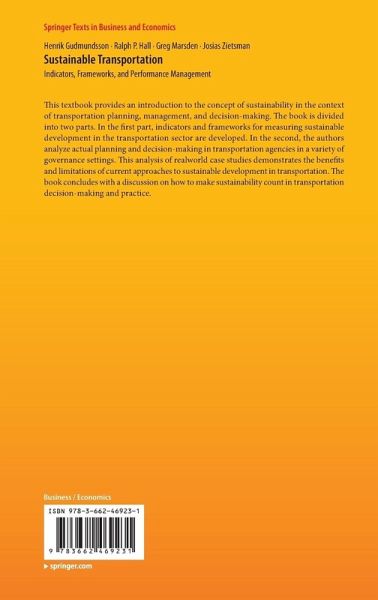 Henrik Gudmundsson is a Senior Researcher in the Department of Transport at the Technical University of Denmark. He has a PhD in Business Economics from Copenhagen Business School. Henrik s main areas of research and teaching is sustainable transport policy, planning, and assessment. He has held leading positions in several national and European research projects and is the author of articles publishes in international scientific journals on transportation, environment, and planning. Ralph Hall is an Assistant Professor in the School of Public and International Affairs at Virginia Tech. He has a PhD in Technology, Management, and Policy from MIT. Ralph's research and teaching interests focus on applying the concept of sustainable development to infrastructure with a specific emphasis on transportation, water supply, and sanitation systems. He is the co-author of the textbook Technology, Globalization, and Sustainable Development: Transforming the Industrial State. Greg Marsden is Professor of Transport Governance and Director of the Institute for Transport Studies at the University of Leeds. His research interests relate to the why and how of policy making and in particular the interaction between different agents and agencies in the policy process. He works extensively on issues surrounding climate change, resilience and energy in the transport sector (and beyond).He is an Editor of the Journal of Transport Policy. Josias Zietsman is Head of the Environment and Air Quality Division at the Texas A&M Transportation Institute and serves on the Graduate Faculty of Texas A&M University. He holds a PhD in Civil Engineering from Texas A&M University. His research and teaching interests encompass transportation and the environment. He has led several high-profile projects inthe area of transportation and sustainability and is an active member in the research community.