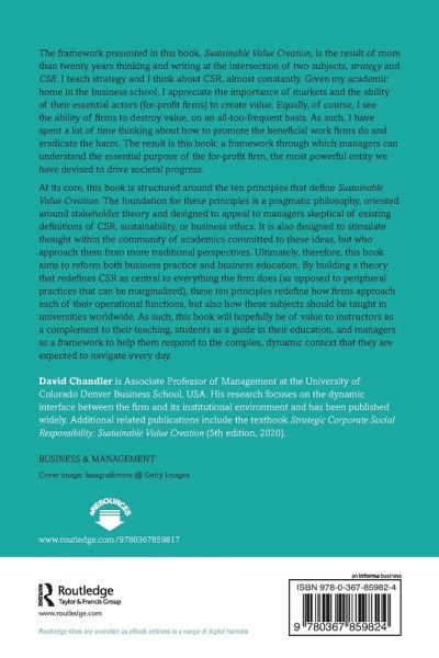 Ultimately, this second edition book aims to reform both business practice and business education. By building a theory that redefines CSR as central to the value creation process, the ten principles of Sustainable Value Creation redefine how firms approach each of their operational functions, but also how these subjects should be taught in universities worldwide. As such, this book will hopefully be of value to instructors as a complement to their teaching, students as a guide in their education, and managers as a framework to help them respond to the complex, dynamic context that they are expected to navigate every day.